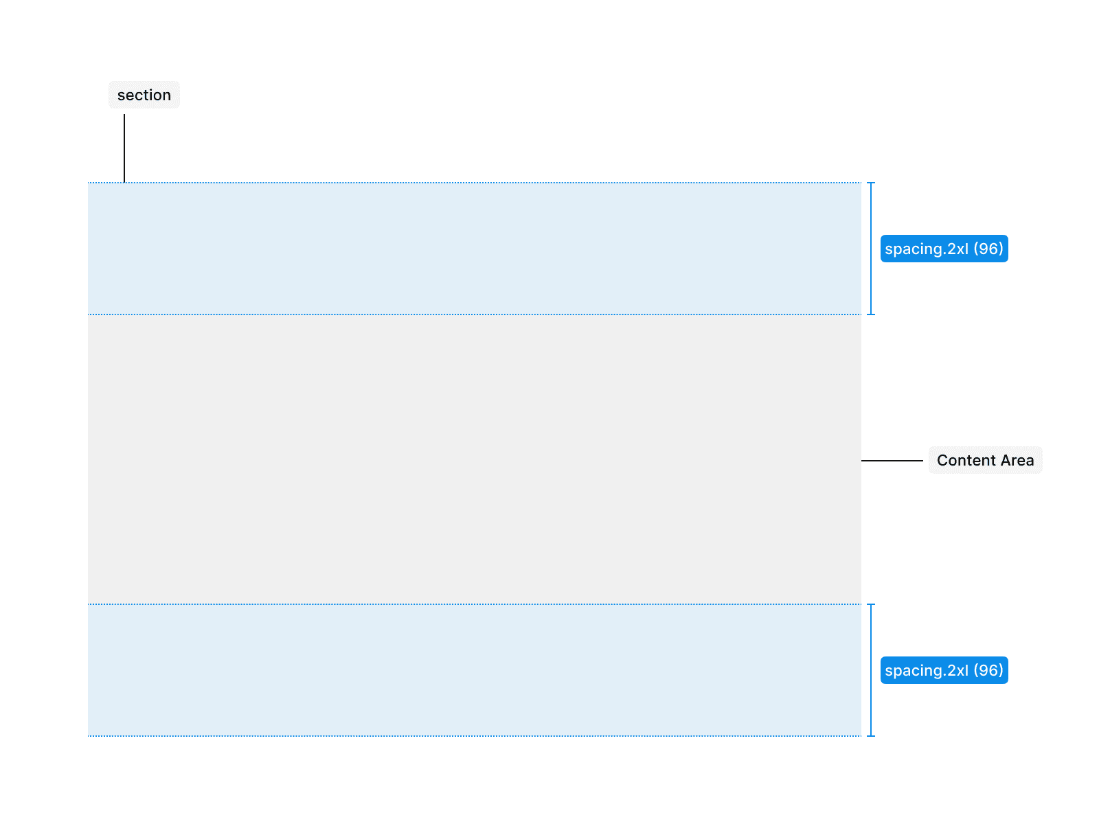 Use spacing.2xl for inner vertical padding in large sections, providing breathing room for content and visually separating sections from each other.