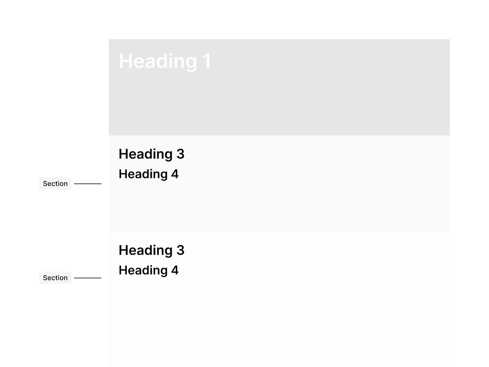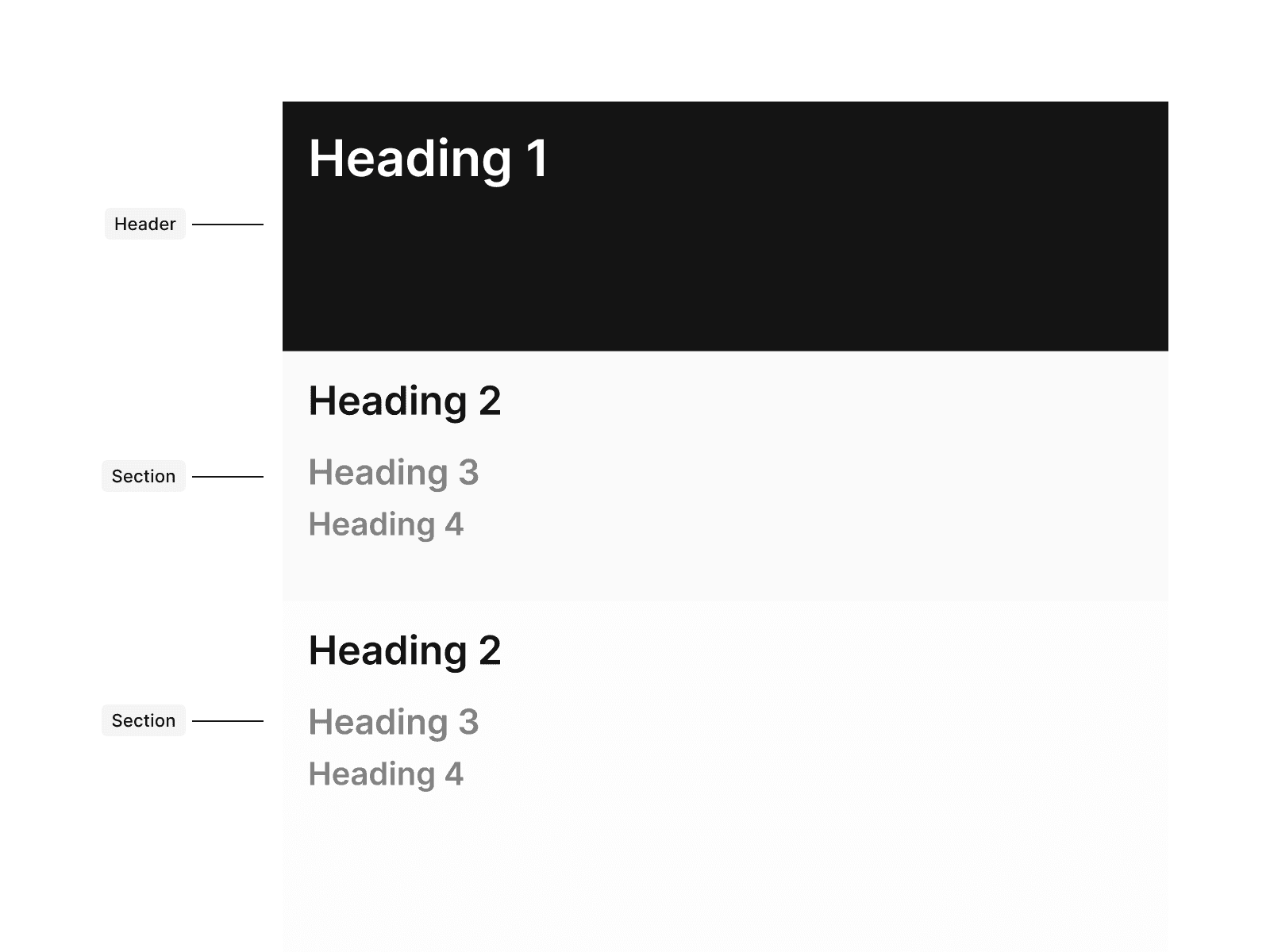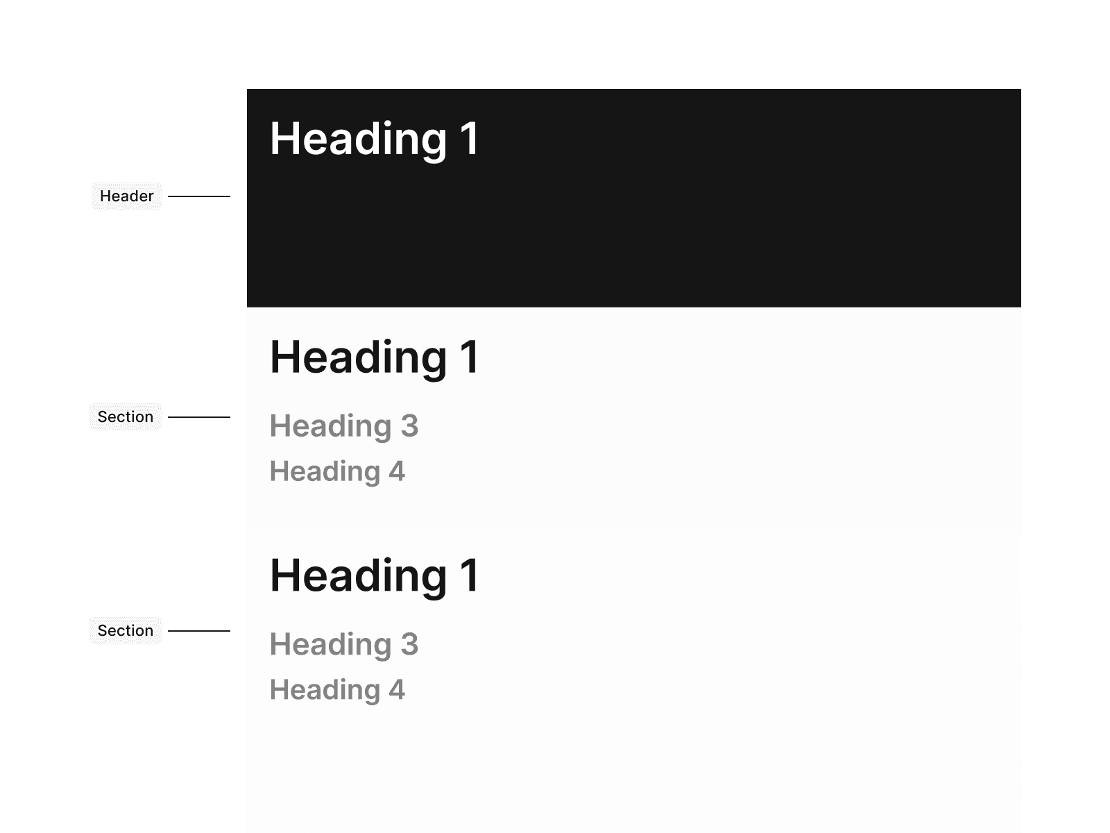 Don’t start a content section with any heading other than H2, since it disrupts the HTML structure and looks visually inconsistent.