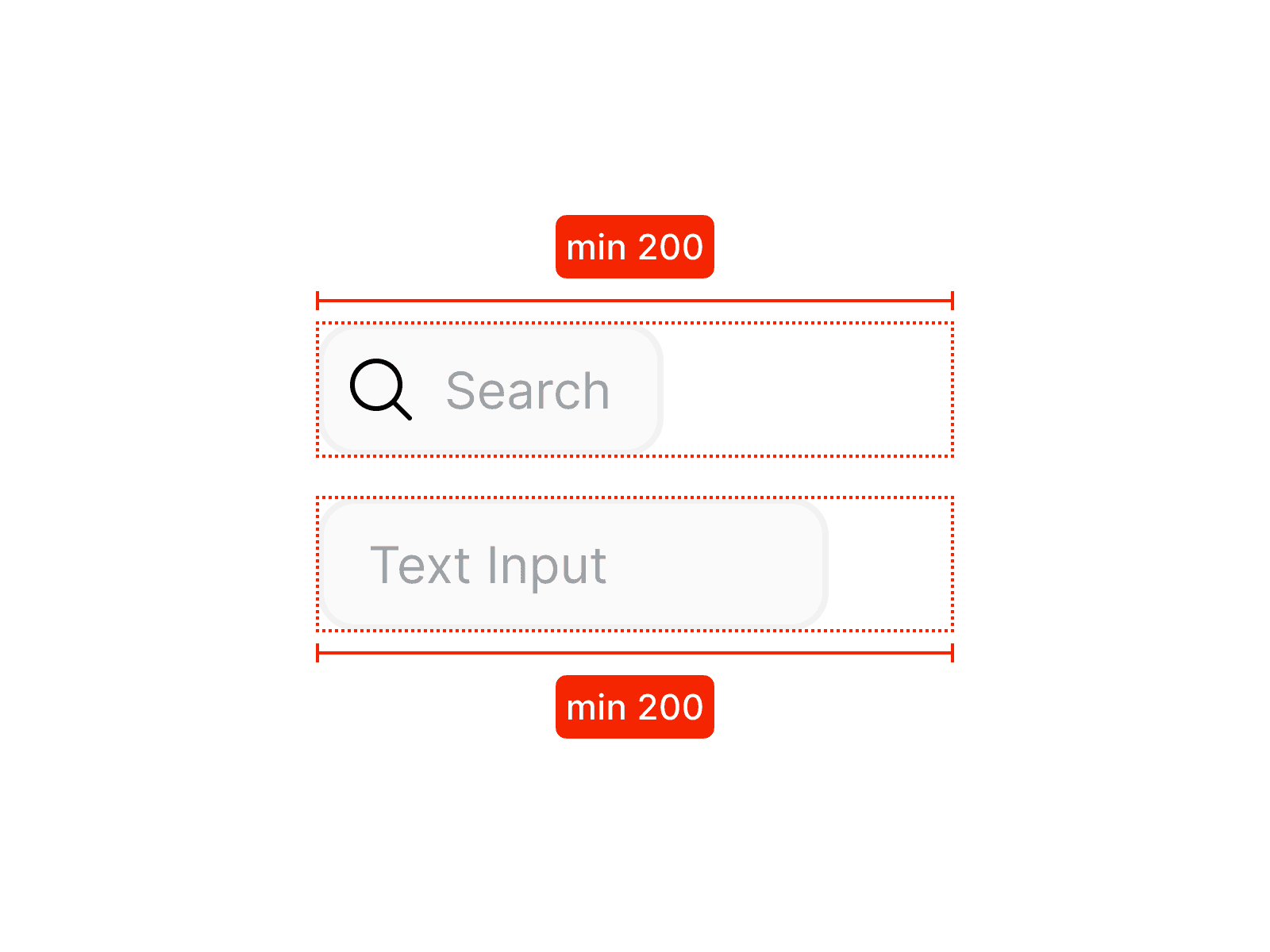 Textual input fields must have a minimum width of 200px so that entered content remains visible at all times without cutting off information.