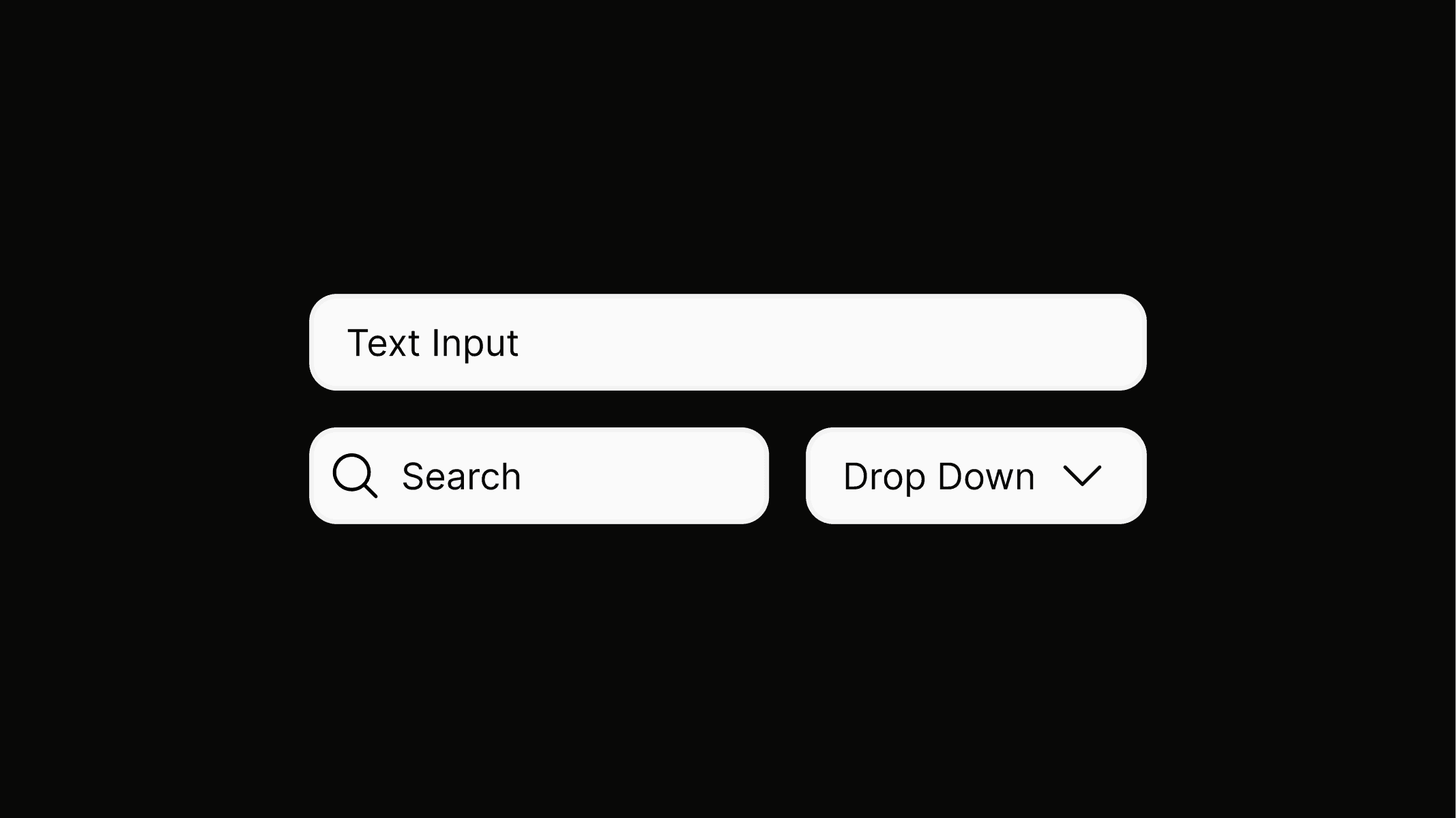 There are three variants available to cover the necessary interaction patterns: the standard input field for direct text entry, the dropdown for selecting from predefined options, and the search field optimized for quickly finding products or content.